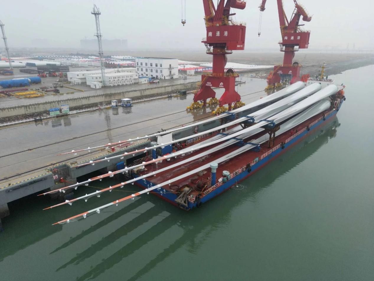 12月19日,拆载111米超长风电叶片的“众恒山海”轮从通州湾吕四起步港区通用船埠起航,刷新船埠最长风叶吊拆记载。