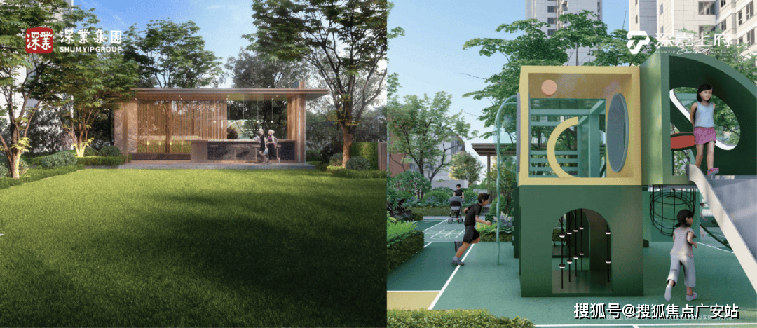 看功能!公区部门,更是把全龄段需求都拿捏了:宝妈带娃有儿童勾当区,滑滑梯、大草坪一应俱全!